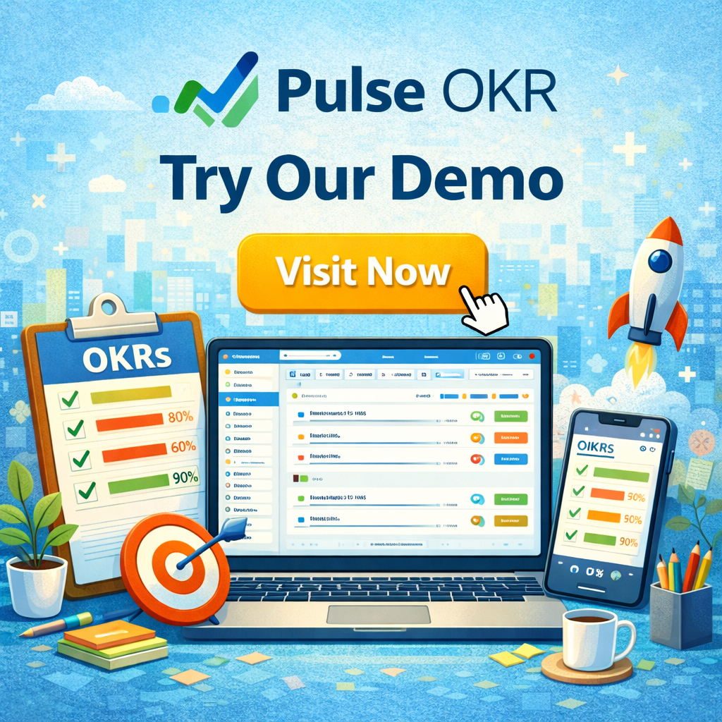 See exactly how Pulse OKR works before signing up. Our interactive demo lets you explore real OKR examples, team structures, and progress tracking – no account needed.